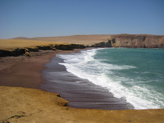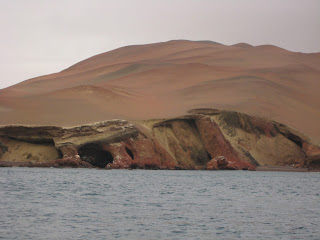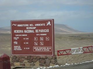 After the Visitors' Center Juan Carlos takes us on a land tour of the National Reserve of Paracas. He keeps a running dialog as we drive along the coastline of an arid desert that receives only 2 mm of rain a year. An area known for its dust storms.