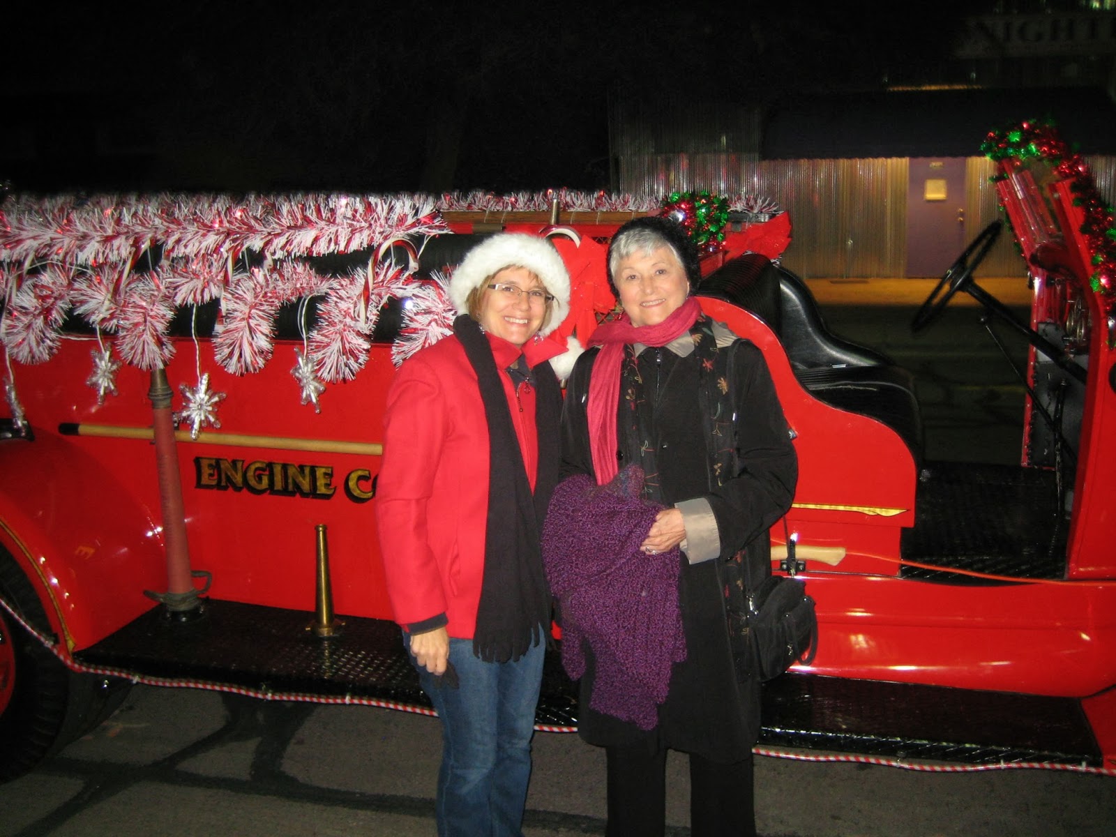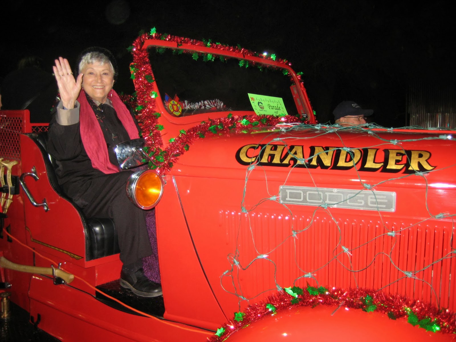 We drove to downtown Chandler, maneuvering our way through masses of people to find our reserved spot in the parking garage near city hall. My husband met us and we walked a few blocks to our destination - an old fire truck, the fifth entry in the Festival of Lights parade.