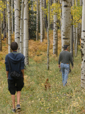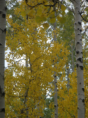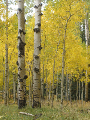 We became uninvited stumblers into a concert of one when we entered an aspen cathedral the white pillars reaching skyward in a silent anthem of golden hues echoing in orange and brown
