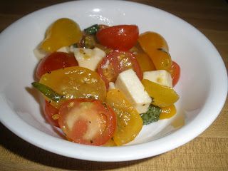 I'm just guessing on the amount of tomatoes and basil. I usually just cut and mix and taste until I've got it right.