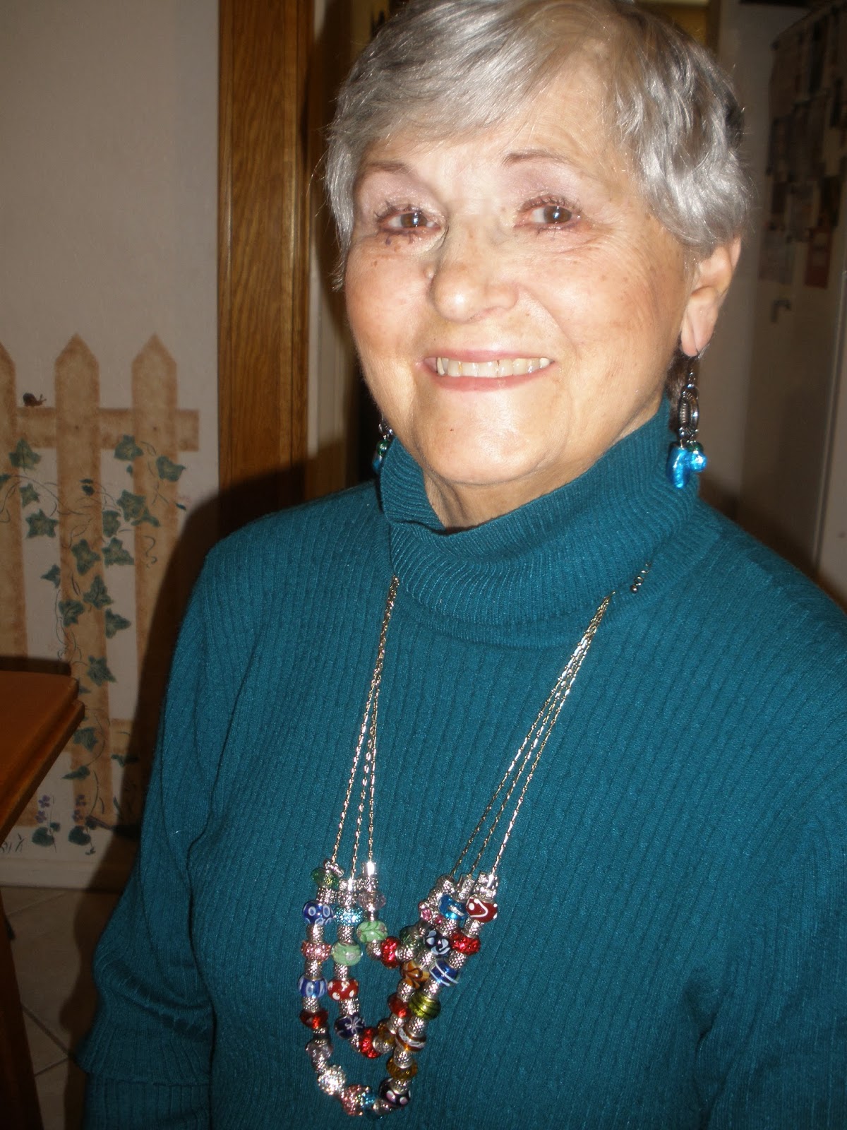At the service, several people mentioned Mom's last project, a necklace of birthstone beads, she made in January. She would finger each bead and talk about the family member it represented. Daughter, Katelyn, took the necklace apart this weekend and made a Christmas ornament for each family using their beads.