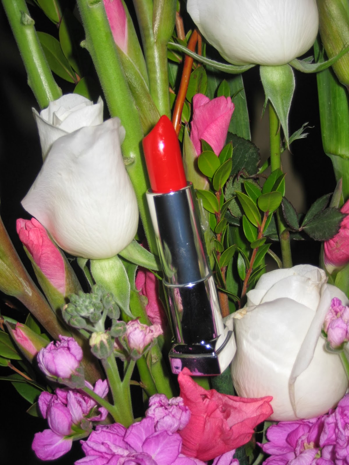 I love that a friend had a bouquet delivered with a tube of lipstick nestled in the flowers.