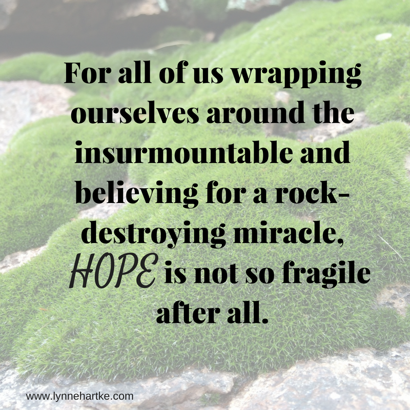 For Flo. For her sister. For all of us wrapping ourselves around the insurmountable and believing for a rock-destroying miracle.