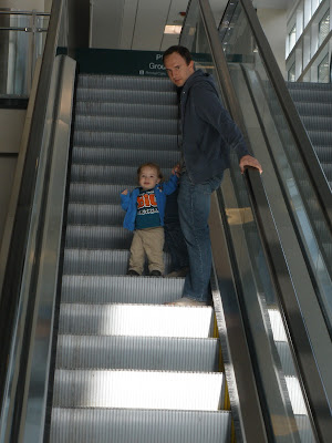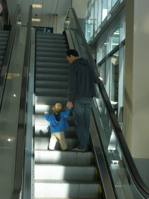 He grabbed his dad's hand and toddled on his just-walking, thirteen-month legs to the ascending staircase.