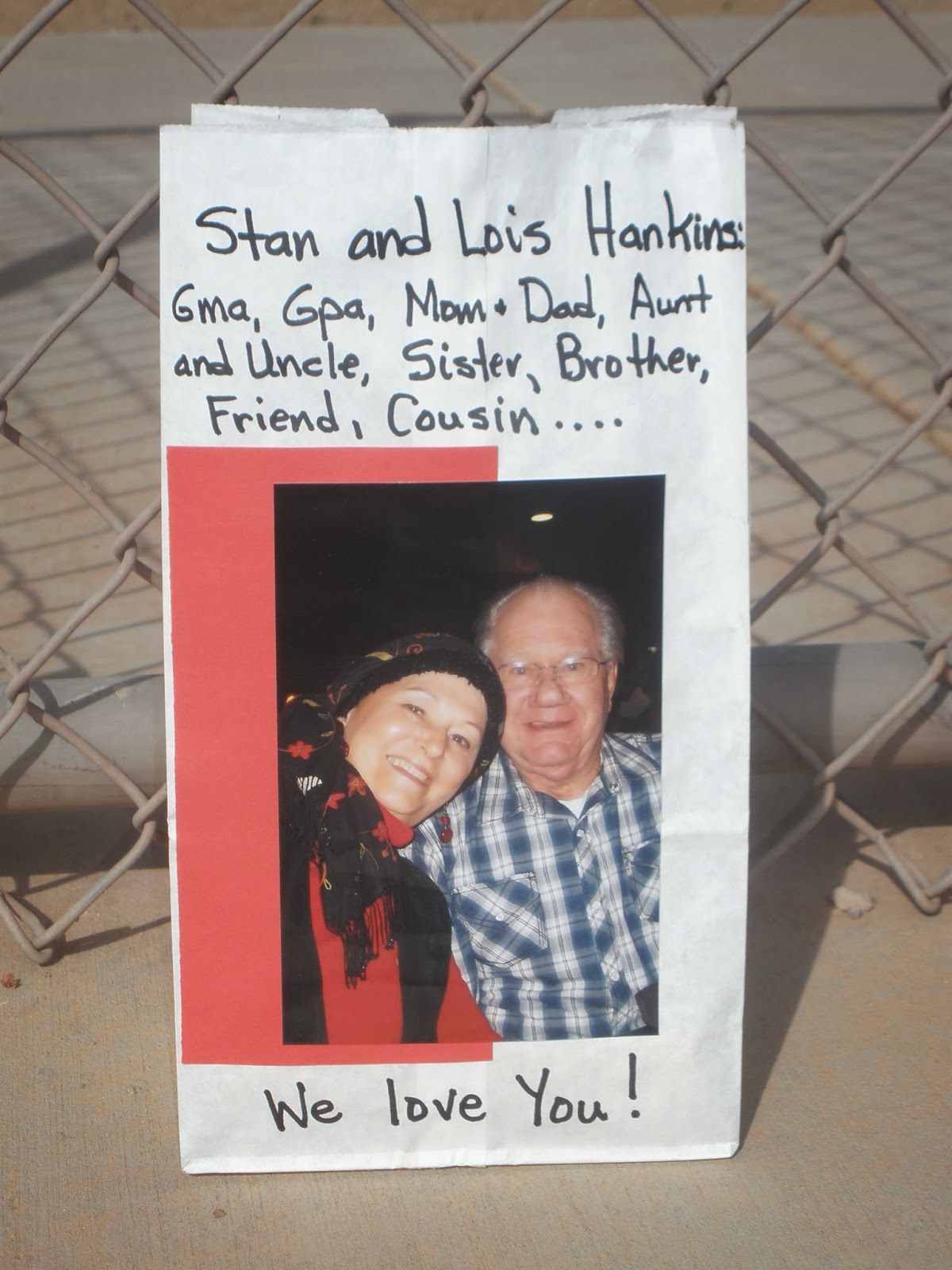 That is where we begin, on a Relay for Life track in Minnesota, where Mom and Dad lit luminarias with our three names: